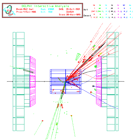 En reaksjon i DELPHI-detektoren der signalene i detektorene